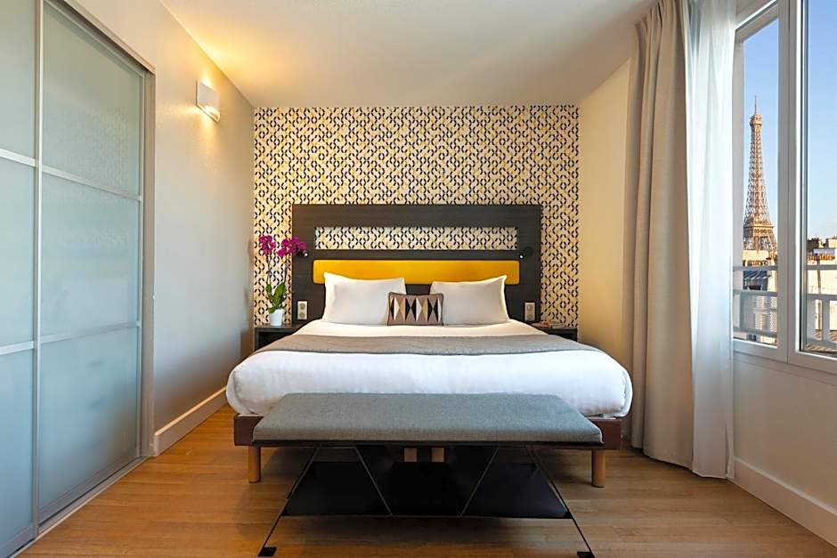This deluxe air-conditioned studio offers views of the Eiffel Tower. It features a contemporary-style decor, a satellite flat-screen TV, free Wi-Fi access.